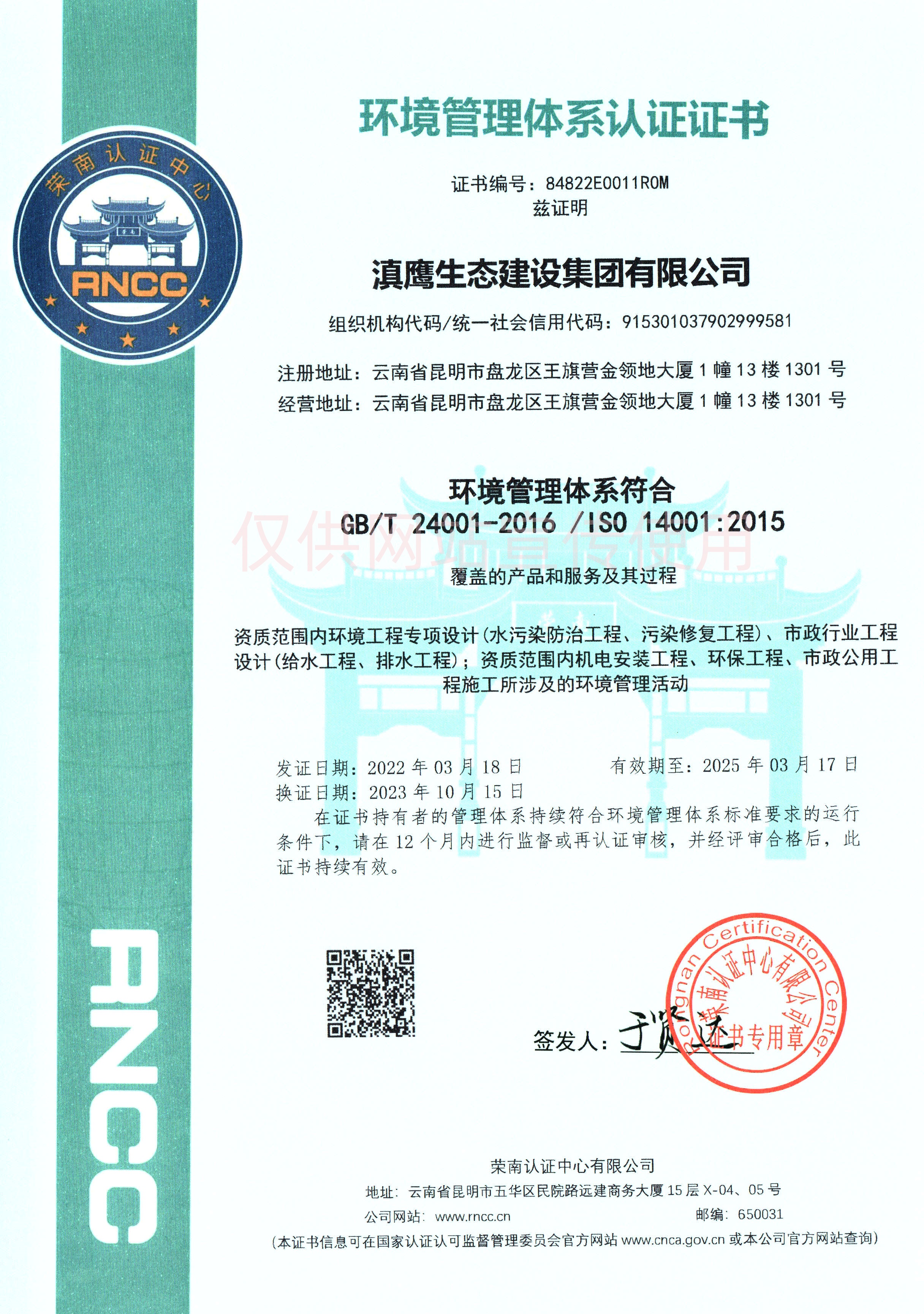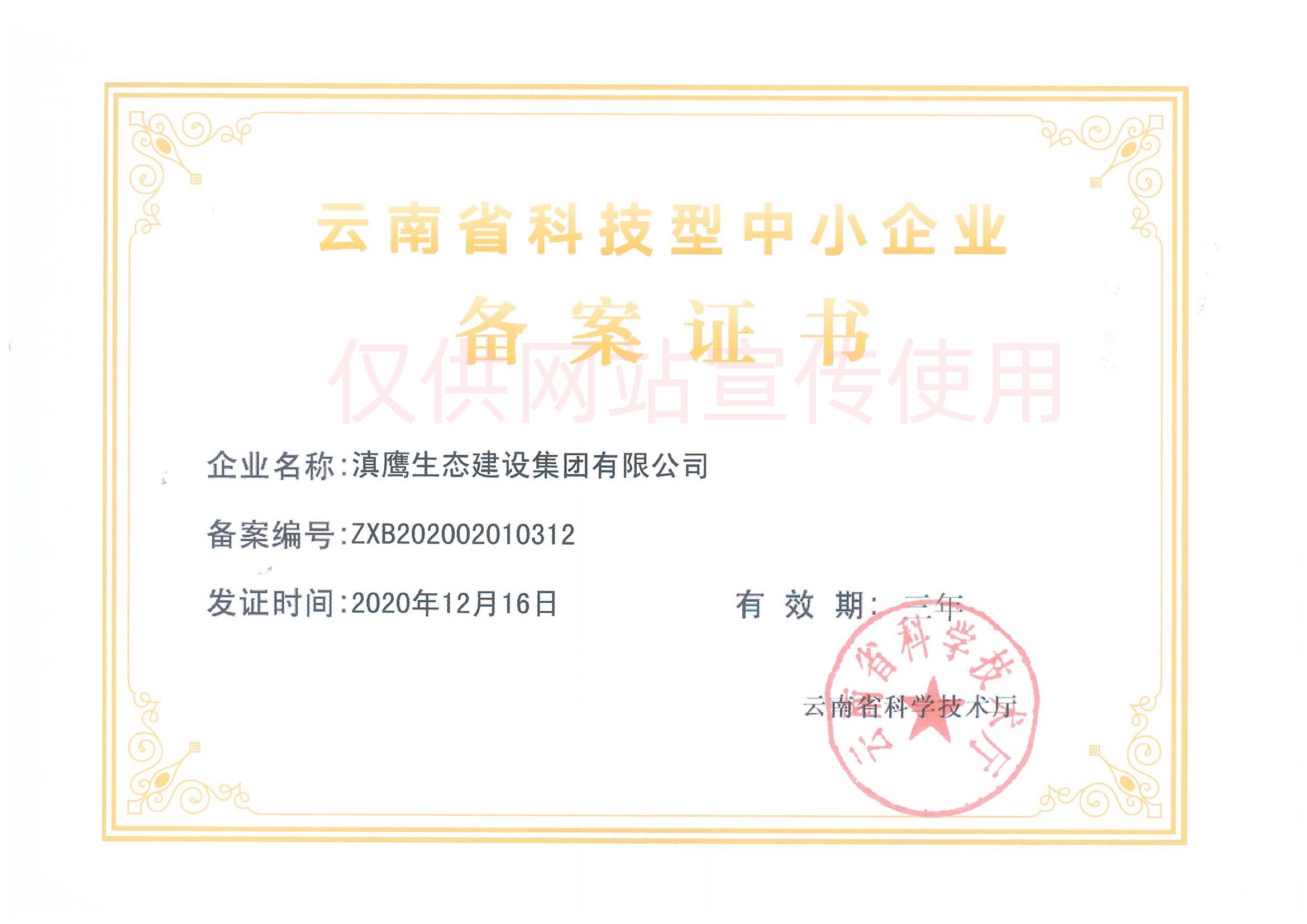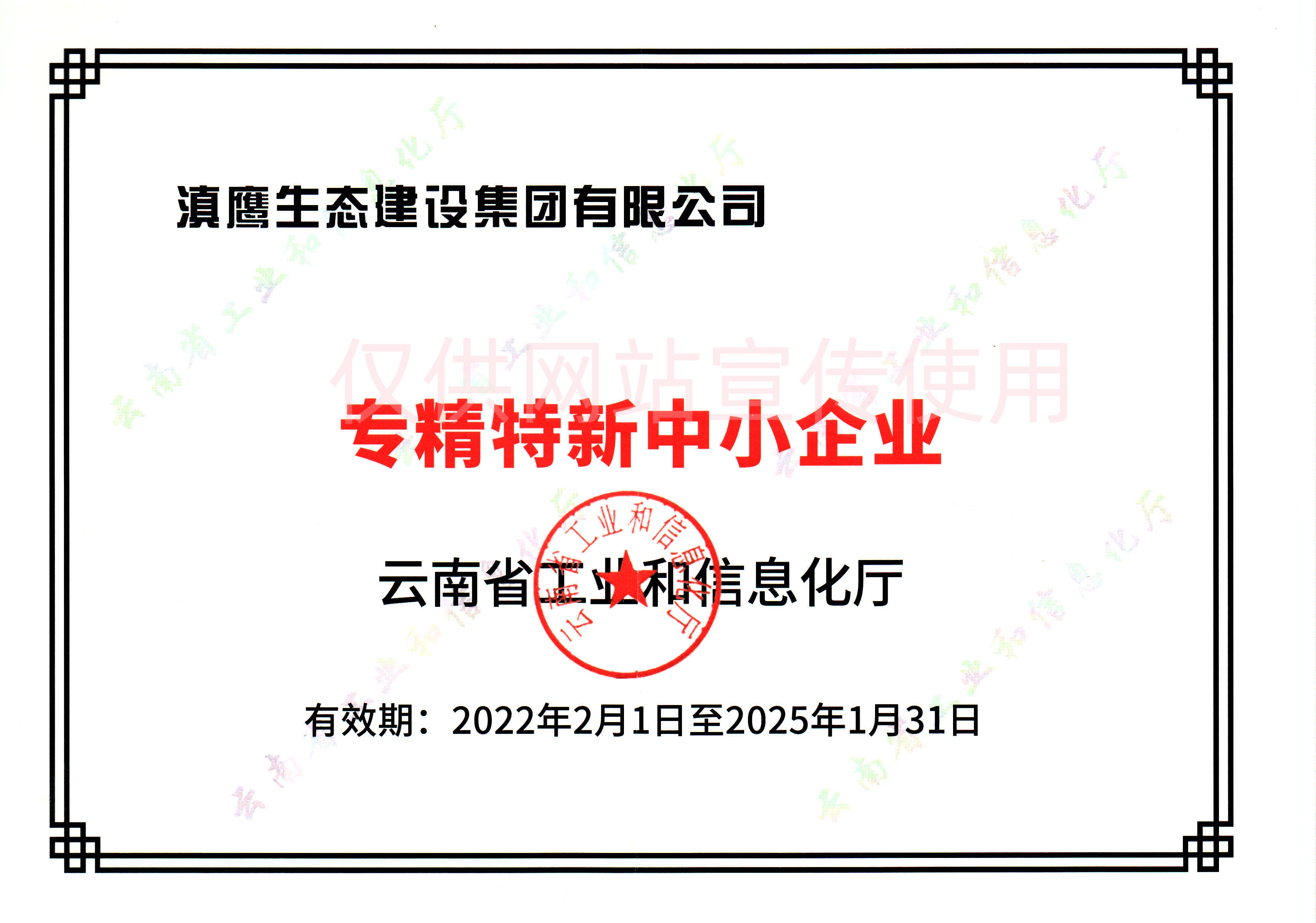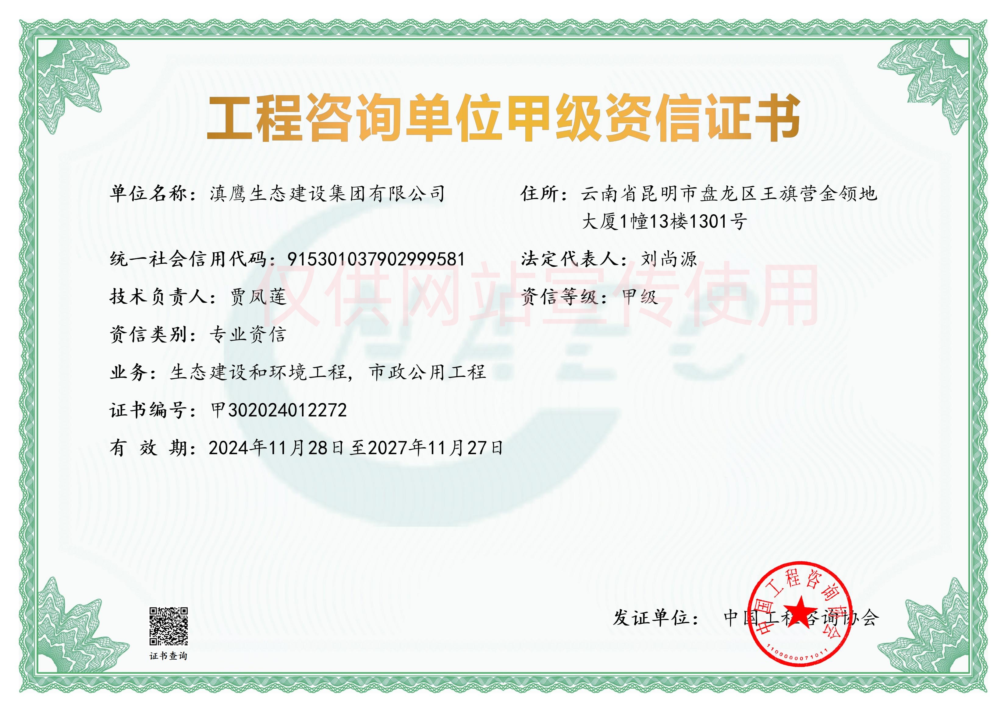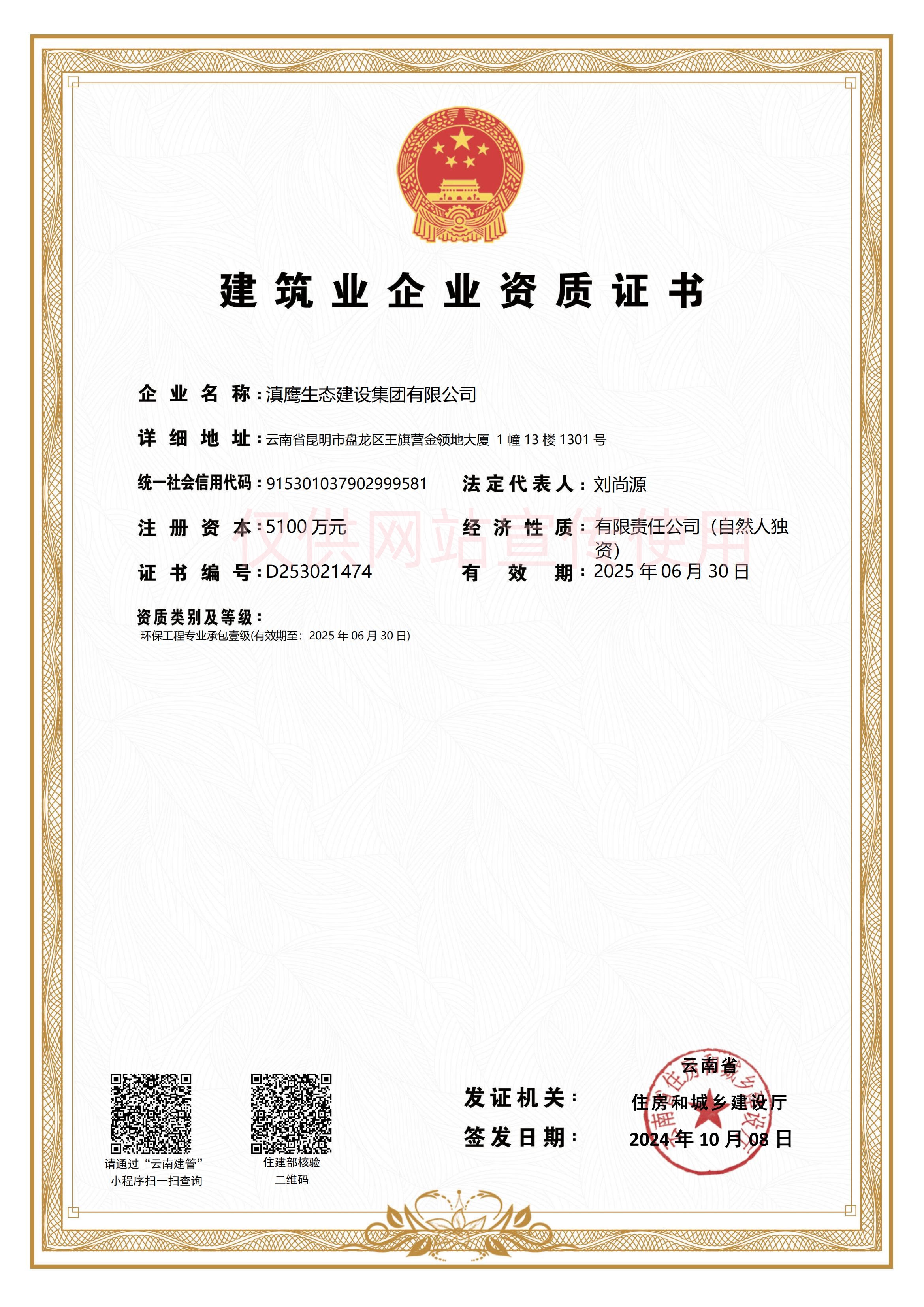 滇鷹生態(tài)建設集團以雄厚的技術(shù)力量、先進(jìn)的經(jīng)營(yíng)理念,濃厚的企業(yè)文化,不懈的創(chuàng )新精神,迅速發(fā)展成為生態(tài)環(huán)保行業(yè)中最具影響力的企業(yè)之一。集團具有工程咨詢(xún)資質(zhì)甲級、環(huán)境工程設計資質(zhì)、市政行業(yè)工程設計資質(zhì)、環(huán)保工程專(zhuān)業(yè)承包壹級資質(zhì)、市政公用工程施工總承包貳級資質(zhì)、環(huán)境污染治理甲級資質(zhì)、污染治理設施運營(yíng)資質(zhì)等,并榮獲“國家高新技術(shù)企業(yè)、國家級科技型中小企業(yè)、云南省“專(zhuān)精特新”中小企業(yè)”、昆明市企業(yè)技術(shù)中心、云南省掛牌企業(yè)等榮譽(yù)稱(chēng)號。