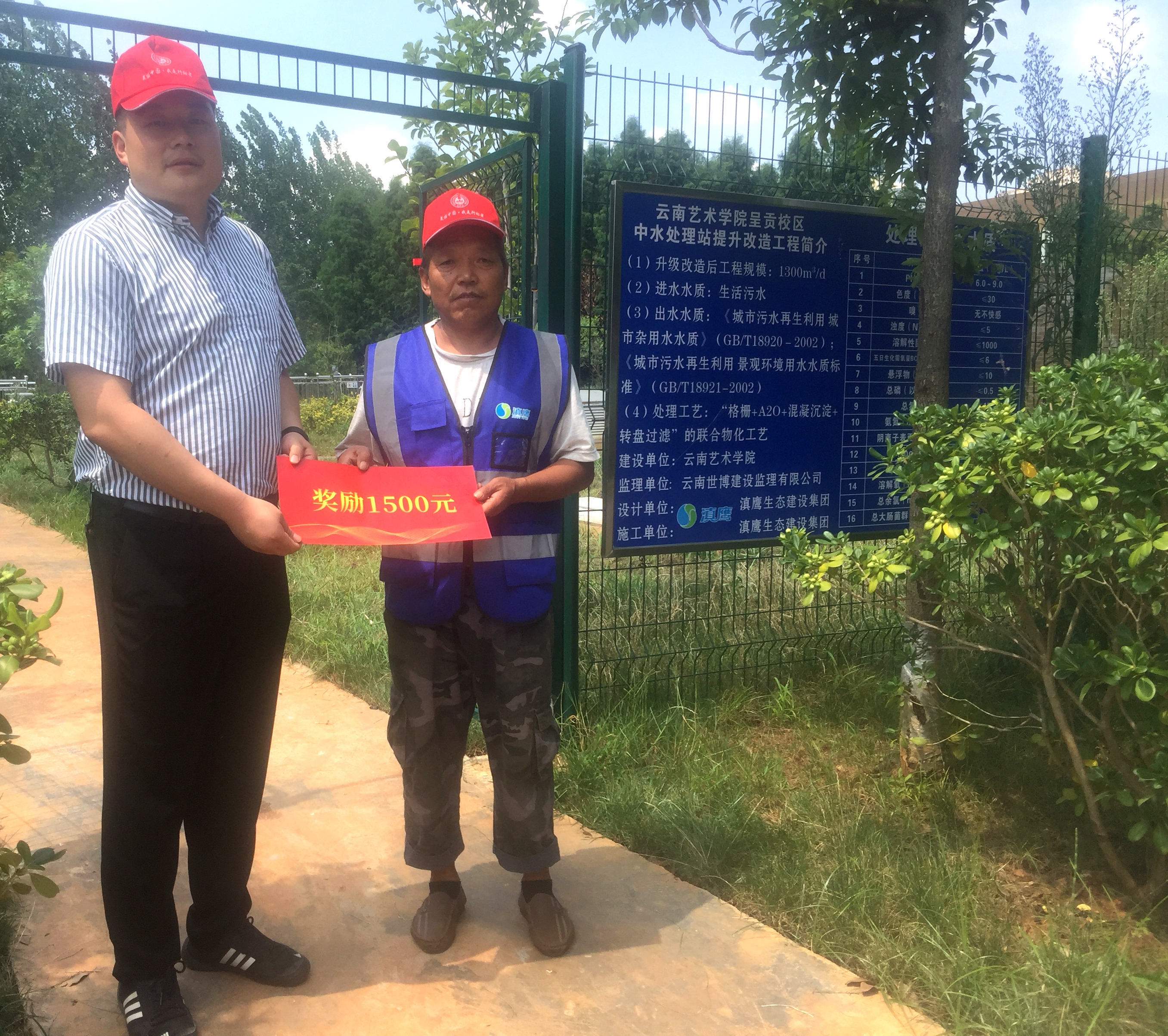 8月4日下午,總經(jīng)理耿慶鈺先生帶領(lǐng)公司中層領(lǐng)導前往中水站現場(chǎng)進(jìn)行慰問(wèn)學(xué)習,并親自為張紅良同志頒發(fā)獎勵。
